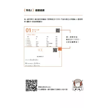 書中單字、會話的發音,也可以透過QR CODE掃描聆聽。