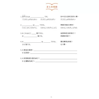 本書的所有文法例句、會話、練習題等,都附有中文翻譯,並提供解答別冊,不需另外購買。