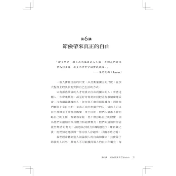 不論你在追求財富的道路上是處於哪個階段,仔細閱讀、思索、計畫、實踐這本書中的明智建議,你將不只能解開財富的祕密,更能獲得讓人生真正幸福、富足的智慧。