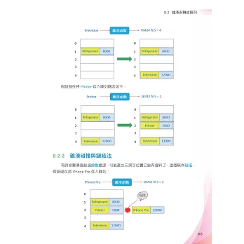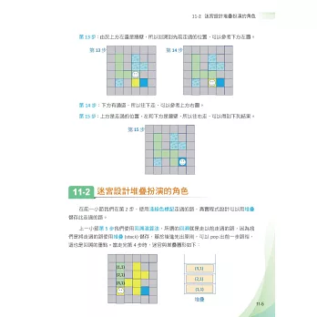 全書內容包含120 個程式實例,使用約600 張完整圖表或圖例,完整解說8 種資料結構,數十種演算法相關知識,此外也針對國內外著名公司應徵程式設計師的演算法考題做解說,這本書包含下列主要內容。