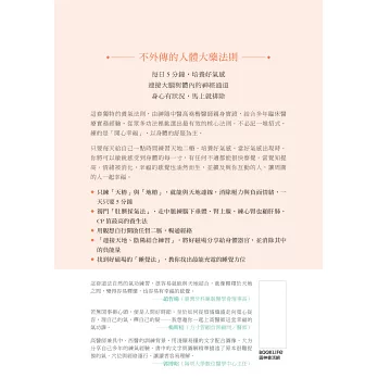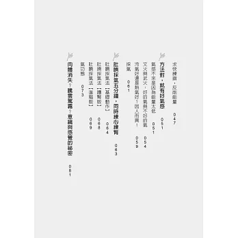 不管你是否練過氣,閱讀本書時,你的經絡將會慢慢在不知不覺中解開。你將不再是以前的你。透過本書簡單但有效的方法,想到時就練習,你將親身感受到更大的幸福。