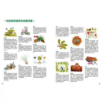 《最美的森林…{需要我們一起來保護}》除了美麗的插畫以外,更提供了豐富的生態知識: