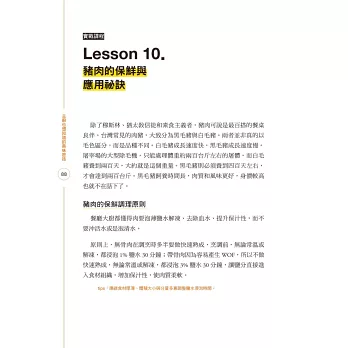 從採買注意事項、食材保存保鮮開始,至解凍料理等各個過程,鉅細靡遺,傳授其中眉角,提供各種家庭料理中的應用方式。