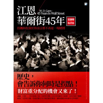 江恩是一位給整個世界留下珍貴遺產的天才,他不但是趨勢理論和技術分析大師,而且還是成功的踐行者。讀完《江恩華爾街45年》後,你會發現他果然是實至名歸——在江恩縱橫市場的45年中,國際與國內形勢都大幅動盪,既有兩次世界大戰,又有1929年的股市大崩潰以及隨之而來的大蕭條。在如此不確定的環境下,他不但賺取了大量財富,而且也昇華成了聲名顯赫的實用派理論大家。