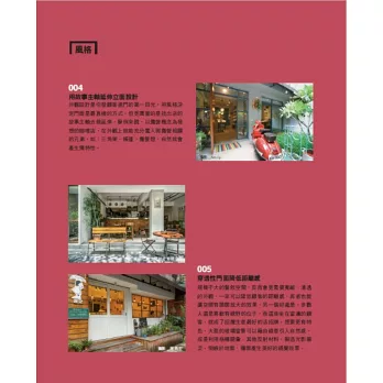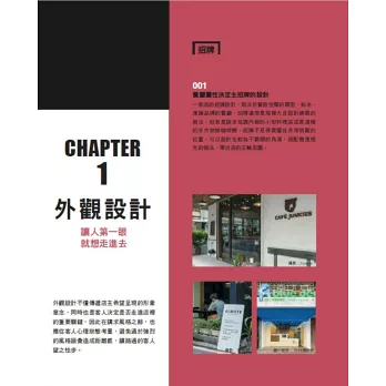 不同於一般以飯店、連銷餐廳等大型商業空間為主的商空設計,本書針對小型餐飲空間,以小店空間構成主要元素做分類,從外觀、吧檯、座位區、外帶區四個面相,收錄500個最精采的空間設計idea,提供讀者實景空間參考,更進一步拆解圖片裡的材質、施工、傢具選購及搭配技巧,並能從中學習、啟發靈活運用小空間的設計技巧。