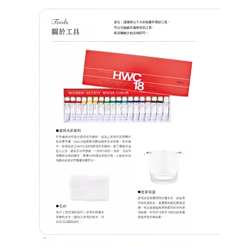 在此,除了要挑戰許多水彩插畫技巧,還需要牢記配色或描繪物的觀看方式等各種作畫時的基本法則。水彩插畫的優點在於短時間內即可完成作品,而且不需要太大的作畫空間。透明水彩的柔和風格,能給予畫者與觀者一種溫柔的感覺,所以請務必親自體會水彩插畫所帶來的樂趣。