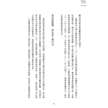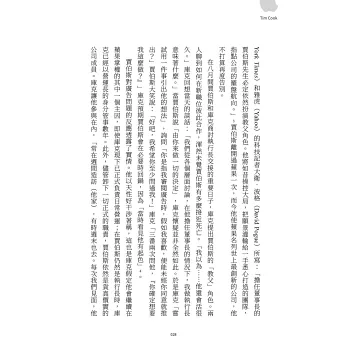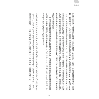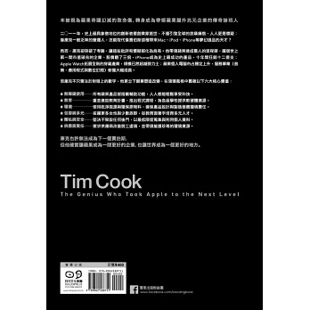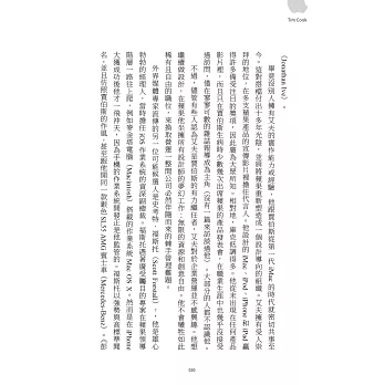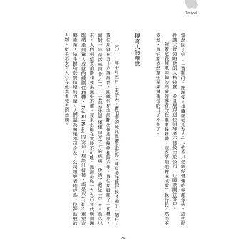 《提姆.庫克》一書的開場便令人印象深刻,從賈伯斯臨終前的那一刻開始描寫;那許多人譽為「二十世紀最具開創性的天才,『最終想通了所有事情』」的那一刻,召來提姆.庫克交付他蘋果執行長的職務,也成了賈伯斯「最終想通了所有事情」之一。《提姆.庫克》書裡描繪的場景栩栩如生,如同我們就在賈伯斯的病蹋旁,與提姆一起參與那最終的交付。