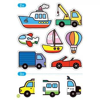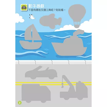 馬路、大海和天空有什麼交通工具呢?快來找一找、貼貼看吧!