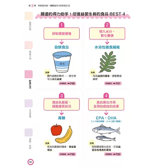 •多吃發酵食品,以及含有水溶性膳食纖維、寡糖、EPA&DHA的食物,有助於打造健康腸道