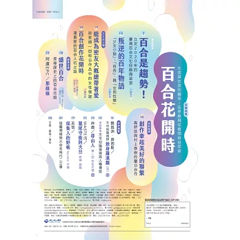 千禧年間於華文創作圈正式崛起的「百合」文類,描述女性間的情誼。比起另一支並蒂奇花「薔薇」(BL),百合所涵蓋的情感樣態,恐怕有著更多面、更微妙的折射。