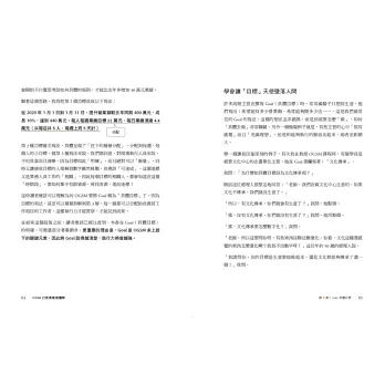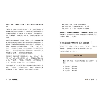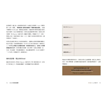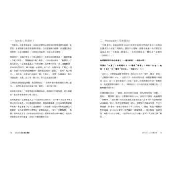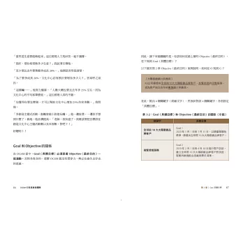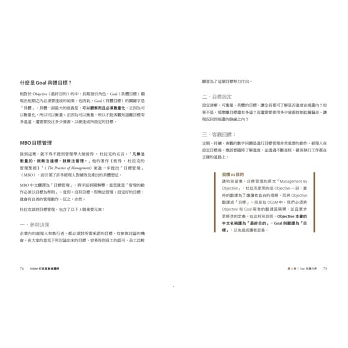 如果你已經讀過目標管理與OKR相關書籍,覺得仍舊空中樓閣,難以落地,那這本書非常值得你好好讀過一遍,幫助自己融會貫通。若你從未讀過目標管理或OKR的書,我會建議不妨先從這本書讀起,比起OKR,本書把目標管理的實作精神講得更仔細、更方便讀者套用在日常管理當中。──姚詩豪(大人學共同創辦人)