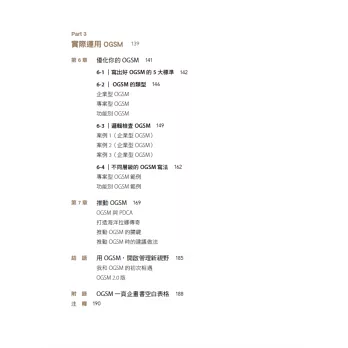 本書獨家!輔導300家企業淬鍊而出的獨門檢查法,用邏輯思維層層檢視正確度,產出能夠執行,帶出結果的OGSM完美表格。