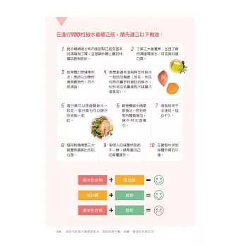 在本書中透過淺顯易懂且專業的說明,讓讀者了解實際食物搭配方法、基礎代謝率計算、每日總熱量消耗、間歇性碳水循環飲食法與相關食譜內容介紹,讓一般人或實際參與運動之愛好者,能吃得健康與吃出食材美味外,更能加深其實際運用之效益。──王家玄博士