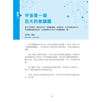 隨著科技的快速發展,宇宙真相似乎也逐漸明朗。結合「弦理論」與「黑洞熱力學」的「全像原理」說明世界是心的投影,宇宙不是物質,而是心智與心靈!你會發現世界是如此精密奧妙,而生命就是一場深耕及釋放天賦、不斷創新的旅程。