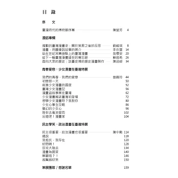 本書收錄知名漫畫研究學者、資深從業者及臺史博漫畫研究策展團隊等,針對臺灣漫畫的發展史、文法、命運轉折、未來以及策展推廣過程,撰寫7篇專文,並完整呈現臺史博在2019年至2020年間舉辦的兩檔漫畫特展。