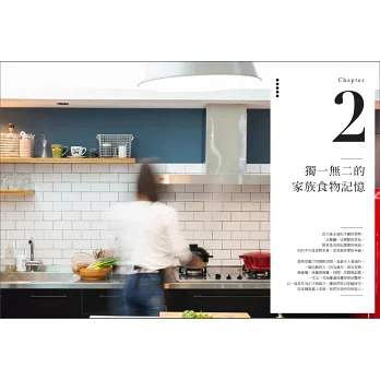 這是一本食譜,也不只是食譜,而是家人和我的集體印記。每一道料理都是我對他們的告白,在餐桌上累積著我們的故事。一家人就在這些餐飯與杯觥交錯之中,牽絆得越來越深。