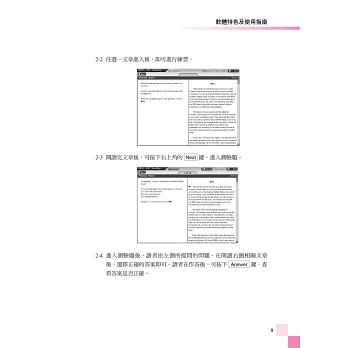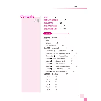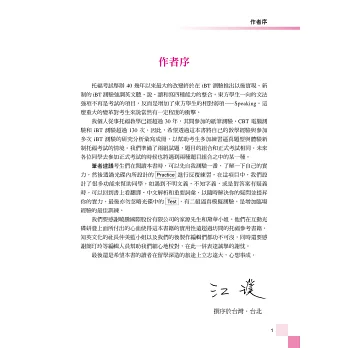 隨書軟體光碟具備測驗與練習功能,練習時可調整音檔語速及顯示(隱藏)播放文字,貼心的功能設計有助你了解自己該加強哪些技能。本書針對所有試題均附中文翻譯及解析,是一本道地、紮實且用心的托福考用書。