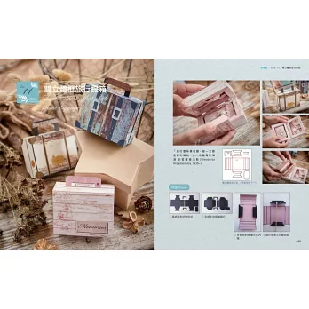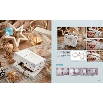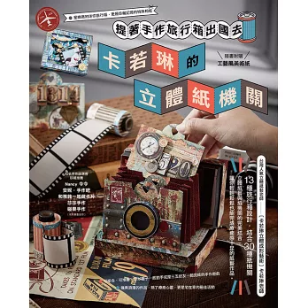 13款讓你看了就想出國去的旅行箱作品,除了設計精巧更富有令人驚喜的機關設計,不同於其它紙藝書,以旅行箱為設計架構:有相框摺頁旅行箱、半圓提盒旅行箱、驚喜彈跳旅行箱、機關鎖旅行箱……等等。