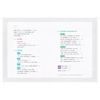 收錄各種型態旅遊:短程飛行、飛行時數達七小時的中程旅行、到跨洲旅遊;從兩天一夜到居遊一個月;從母子兩人旅、到小家旅、家族大旅行以及朋友兩家結伴行;從自駕、跟團到郵輪旅行,囊括各種旅行,一本攻略,完全上手!
