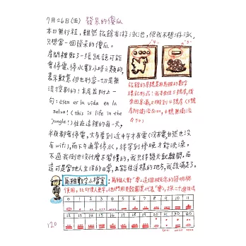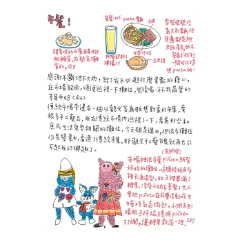 *收錄Peiyu佩瑜的素描和彩色寫生作品、當地生活的食衣住行、背包客須知、口袋訊息