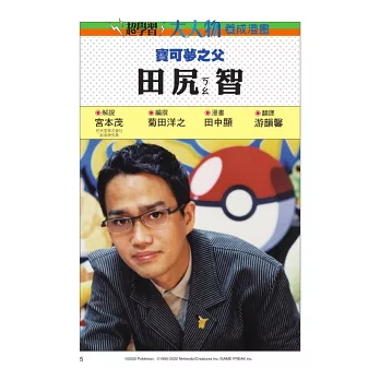 以漫畫的形式,輕鬆閱讀田尻智的人生故事,一起來認識這位號稱「精靈寶可夢之父」的遊戲開發專家,學習他那股為了成就夢想而堅持不懈的恆毅精神!