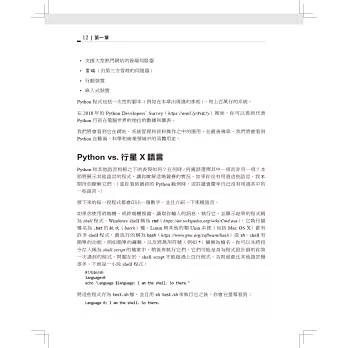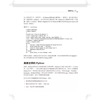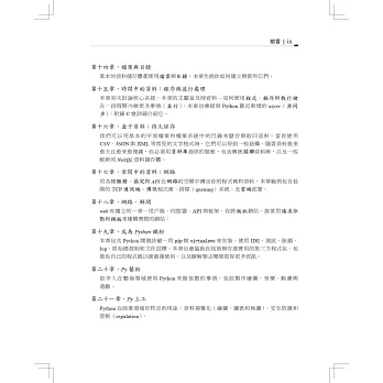 「本書是Bill Lubanovic的傑作,先為你紮下深厚的程式設計基礎,再教你用大型的Python工具箱來解決實際的問題,你絕對可以在這本書學會如何運用Python解決問題。」 —Loïc Pefferkorn,開放原始碼系統工程師