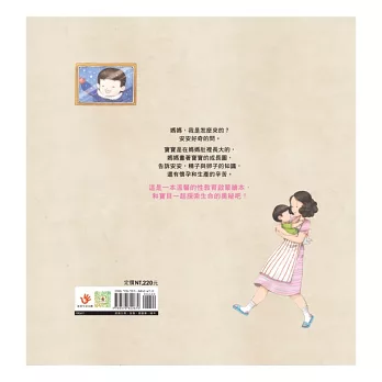 從孩子普遍好奇且家長又難以啟齒的問題入手,正向且含蓄的表達,不帶給孩子困惑又能清楚的傳遞性知識,也藉由趣味的情景圖,建立孩子對性的初步了解,幫助親子間一同了解生命起源、媽媽的懷孕過程與生產的辛苦。
