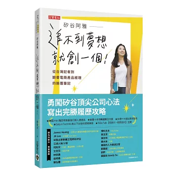 在美國工作十幾年,阿雅用她收穫的視野、經歷、專業,在書中具體教讀者怎麼突破困境、顛覆規則。常常我們以為無路可走,有可能是因為害怕,也可能是因為一無所知……別擔心!本書詳述阿雅自己創造職位、創造機會、創造自我條件,進而創造出自己夢想的動人經歷,你將從中獲得無限的激勵與力量,跟阿雅一起成為職場不死鳥!