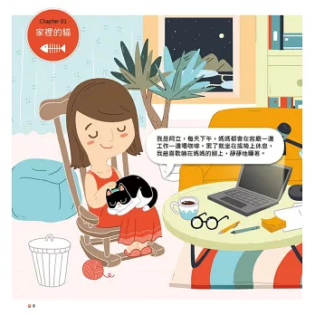 我是阿立,每天下午,媽媽都會在客廳一邊工作一邊喝咖啡,累了就坐在搖椅上休息,我最喜歡躺在媽媽的腿上,靜靜地睡著。