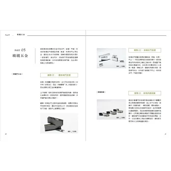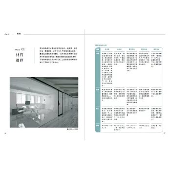 本書分門別類,帶領讀者先從玻璃的製成與再製,對於玻璃的基礎知識全盤了解,再從設計方式為主要章節架構,隔間、拉門、外牆與門窗、裝飾牆做為切入點,細細介紹可以選用的玻璃種類有哪些,並提供玻璃材質選擇上應該注意的重點,以及施作、與不同材質拼接的工法等眉角與學問。