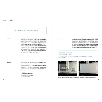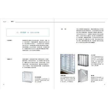 ★應用必知:從玻璃的基本知識著手,再從專業人士運用玻璃的設計作為章節分類,囊括隔間、裝飾牆、外牆與門窗等玻璃運用的巧思與施工關鍵,同時也會詳細介紹各種玻璃的材質特性、工法、計價、設計等等,給予設計人士清晰的選購脈絡與搭配運用概念。