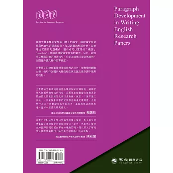 總之,本書符合當今英文學術論文之寫作需求,讓讀者「有知有覺」的學習撰寫流暢而正確的英文研究論文,是一本值得推薦的好書。