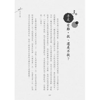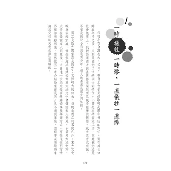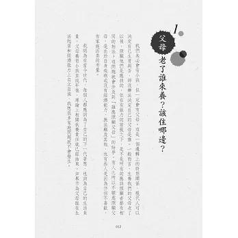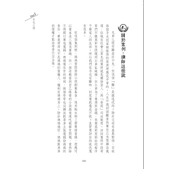 書中透過豐富的案例故事,搭配白話易懂的法律說明,兼具情理法的深度剖析,與你談談手足之情、夫妻姻親、奉養長輩、親子之間的遺棄、家族紛爭、情緒勒索等議題,同時也探討東西方文化差異,以及如何事前規劃,避免遺憾。