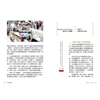 因此,「旅行」和「商看」兩相結合,一次切入兩種角度,猛然翻轉成本書的獨特優點,就算只是想要單純走馬觀花,看看國外到底什麼東西好買,在本書裡也可以找到不少寶藏,這是我對於本書的定位,也希望讀者在其中能夠找到自己想要的東西。本書是一個零售市場的實戰經驗,深入現場去觀摩,並把相關資訊帶回台灣,讓台灣的從業人員或讀者有所比較、參考。