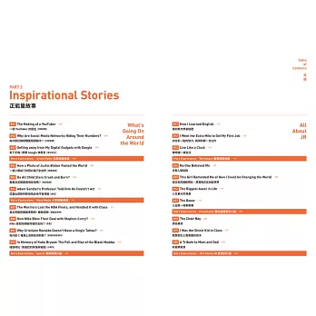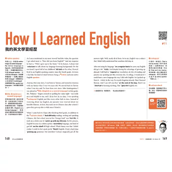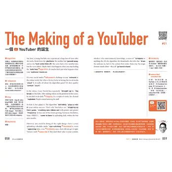 第二部分則是我想跟你們分享的二十篇文章故事,前十篇是有關美國時事的文章,後十篇則是我自己親身經歷的正能量故事,全部都是我親自寫的喔!據說出版社的編輯是一邊流下感動的眼淚一邊校稿的(這是她說的,不是我)。文章中的單字和片語,都會搭配有趣的例句,讓你輕鬆記起來。部分文章還附有QRcode可以連結到我相對應的YouTube影片,當你讀著讀著累了,就可以看看影片休息一下。當然,文章音檔也都是我本人錄製的,個人覺得還頗有誠意的,哈哈。