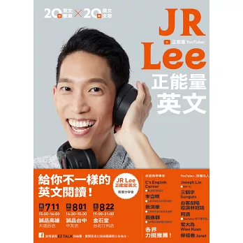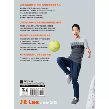 如今JR Lee化身為暢銷作家和老師,要用最正能量的文章來帶著大家學習英文,從正能量的英文歌曲到感動人心的人物故事,JR自己書寫每一篇短篇文章,同時搭配文章中生活化的單字用語,透過有趣的方式來學習英文,根本是一個要搶我飯碗的概念。