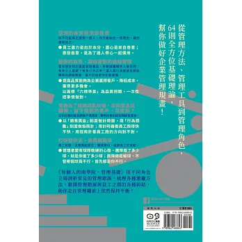 從員工、高階主管到企業經營者,《每個人的商學院・管理基礎》用不同角色立場剖析常見的管理錯誤,梳理各種激勵方法,鬆開管理階層與員工之間的各種糾結。