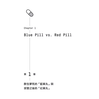 在上一本書裡我提到紅藥丸一詞的由來,主要來自電影《駭客任務》(The Matrix),幫助主角尼歐(Neo)脫離母體幻境的解藥;與之相對的,則是繼續留在虛幻世界醉生夢死的「藍藥丸」(Blue Pill)。你要知道,絕大多數男人和女人相處的兩性觀念,多半是極度女傾,透過影視、網路、紙本,所有你想得到的媒體形式,鋪天蓋地席捲而來,導致男女相處到了最後,男人往往賠掉自己的身家,甚至犧牲夢想,只為了「女人」。