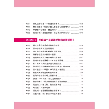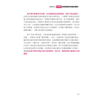 進入股市會先遭遇虧損與挫敗是必然,你遇到的贏家都是極少數的偶然,想要成為穩定的股市贏家,沒有捷徑,必須刻意練習!如果基礎養成不夠扎實,賺賺賠賠是再正常不過。我們真正要交易的是趨向而不是價格,當趨向不對時,股價再便宜也不能買。很多人調整的重心根本錯了,花很多心思研究行情,卻解決不了根本的操作績效問題。交易狀況不佳的主因不是出在你的技術分析技巧,而是你的執行力可能大有問題,你的交易看法並不重要,你用來處理看法的後續反應與動作,才是真正影響你績效的原因,只要方向正確,即便步調緩慢,終究還是會到達目的地。如果你不想就此認輸,決定要勇敢挑戰挫折,堅持要在金融市場獲取成功,相信這本書會帶給你完整、全面與正確的操作基本準則,幫助你找回投資操作的自信!