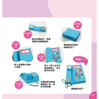 本書可作爲幼稚園手工課的教材,也可作爲親子手工製作的指導書,讓孩子在動手動腦的同時開心地玩,達到真正的寓教於樂之目的;讓他們在興趣中學習、鍛煉、培養良好的能力。