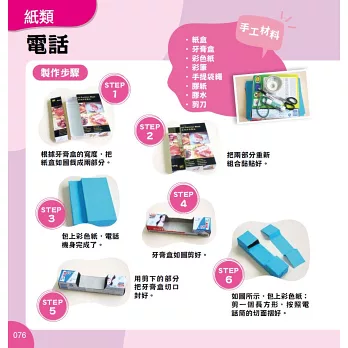本書介紹如何將日常生活中收集的各種各樣隨手可及的材料——廢紙盒、廁紙筒、膠樽、小樽蓋、報紙等廢物再利用,製作成小朋友喜歡的玩具、裝飾品。這些手工可以激發小朋友的想像力和創造力,可謂環保又創意無限!