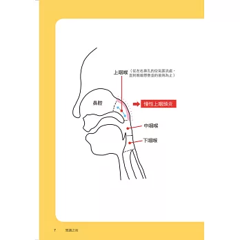 連我都沒有想通這竟然是慢性的鼻咽扁桃體發炎,也可以廣義的稱為「慢性上咽喉炎」,作者堀田修醫師更直接指出這就是「病灶」,也就是生病的「病根」,書中以各種實際案例證明(見第一章),慢性上咽喉炎很可能就是連結「感冒」與「萬病」之間的橋梁,因此與其說「感冒為萬病之源」,不如說「上咽喉炎為萬病之源」來得更貼切,這就是讓我驚羨的天大論點。
