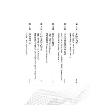 書中的主角們都非常慷慨,願意坦誠對話,觸即的話題更是超越了投資的領域。讀者將有幸見證他們面對壓力、反思自省,乃至於靈光乍現的時刻。