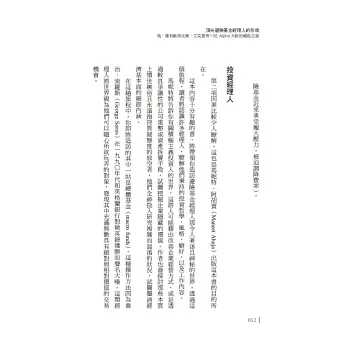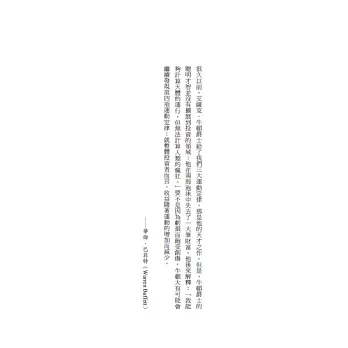 「就我所瞭解,這是少數能夠探索當今最傑出投資人內心世界的專書,詳細討論他們所進行的最佳(以及最差)投資。你覺得自己就像坐在約翰.鮑爾森與大衛.泰珀的對面,分享他們最周全的思維與投資技巧。對於那些夠精明而知道該閱讀本書的人,保證值回票價。」——末日博士魯里埃爾 · 魯比尼,紐約大學史登商學院經濟學教授