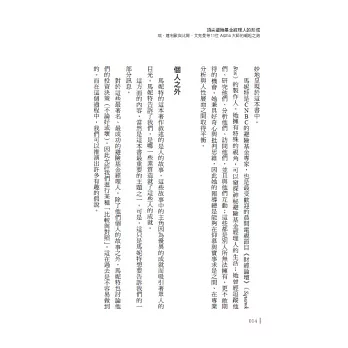 「馬妮特熟識避險基金產業的明星。她寫了一本很有趣的書,提供這個產業內令人深思的啟示,探討其中的快速演化,反映了投資地貌持續變動而產生的適應。可是,最重要者,她引領我們深入認識避險基金產業內迷人的領導者。透過他們的背景、價值與思考模式,她告訴我們在這個競爭最激烈的行業,究竟如何才能成功。」——麥可 · 史彭斯,2001年諾貝爾經濟學獎得主,前史丹佛商學院教務長