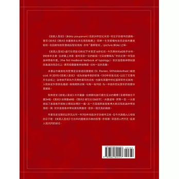 本書針對聖弗里安《貧窮人聖經》的探幽考察,主要在兩方面:一是就其拉丁文的3類9文本進行中譯及評述,一是就耶穌生平系列敘事圖像,如何在基督教預表論神學機制下,跟冊頁其他圖文元素共構相融,進而宣講勾勒耶穌福音救恩史,此為本書兩個主要關照面向。而此一知識再生產跟視覺技術的製程,在聖弗里安繪本古帙中,無疑因圖文的並置,彼此環環扣合,有著完整的呈現。期待本書拋磚引玉催生未來研究,對基督教浩瀚知識建構,有一初步開啟之用。