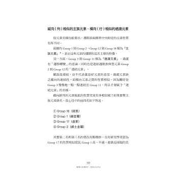 ‧從「族別」(縱向的列)掌握主族元素,以鈍氣最具代表性。