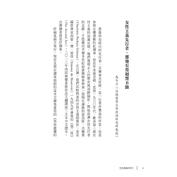 五、 由於吉爾曼批判的「男性主導建構的社會」,是一九一一以前的美國社會,其所描述的現象,與台灣讀者有一些文化與時空的差距。讀者若看到一些說法感到不同意,覺得怪怪的。(例如:她還是使用二分法看待男女的差別,看不到男人與男人之間還有階級/族群/世代的差別,女人亦同。這樣的觀點直到一九八○年代才出現)。請你理解,過去一○八年世界變化太大,知識爆炸了,吉爾曼過時的論點,正可以讓你用來思考這一○八年來的美國文化的變與不變。建議將本書當成經典名著來閱讀,看到有同感的字句或評論,就會產生深刻入骨的感受:「真的!那時就這樣,現在還是呢!」也因此會拍案叫絕,佩服吉爾曼超越時空的前瞻性與現代性。