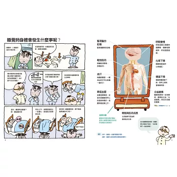 《健康研究室 睡眠篇》告訴你,「睡眠」可不是單純的休息而已。睡眠時,腦會分泌「生長激素」,促進身體成長起床後,身體會分泌「血清素」,讓我們有一整天的好心情。要是睡得不好,血清素分泌不足,會讓人感到煩躁,甚至可能導致憂鬱症。台語俗話說:「一暝大一吋」,也可見到睡眠對成長的重要性。而且世界上也不只有人類會睡覺,大自然的動物也有自己的睡眠模式喔,例如,海豚在睡覺的時候,有半邊是關機狀態,另外半邊卻是開機狀態,所以可以一邊睡覺一邊游泳。