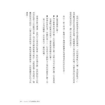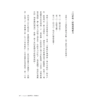 自己在看完這本書後,更深感自我學習及探索道路的無限深度與廣度,也必會將此書放置案頭以便反覆翻閱,不斷提醒自己繼續練習。